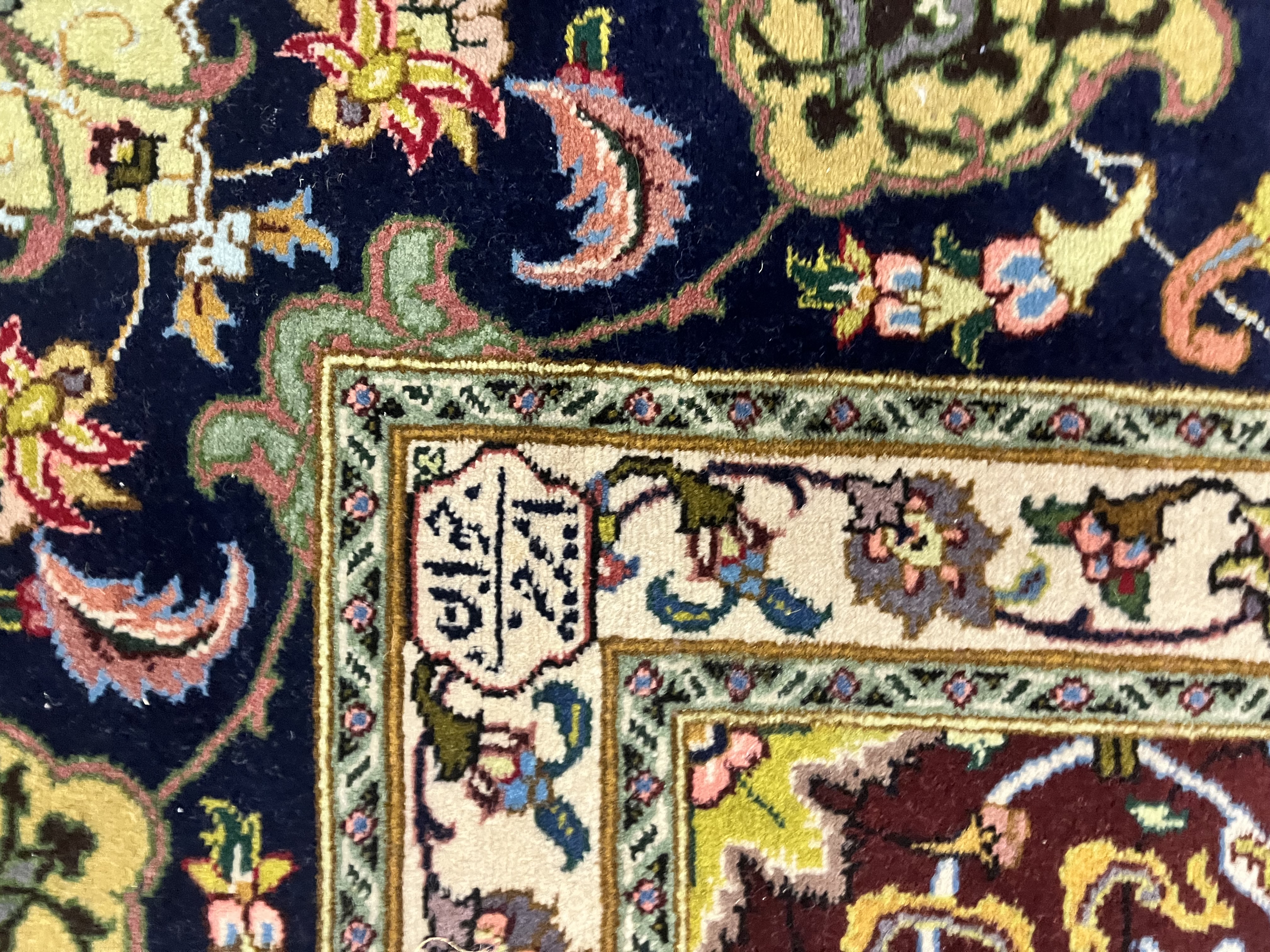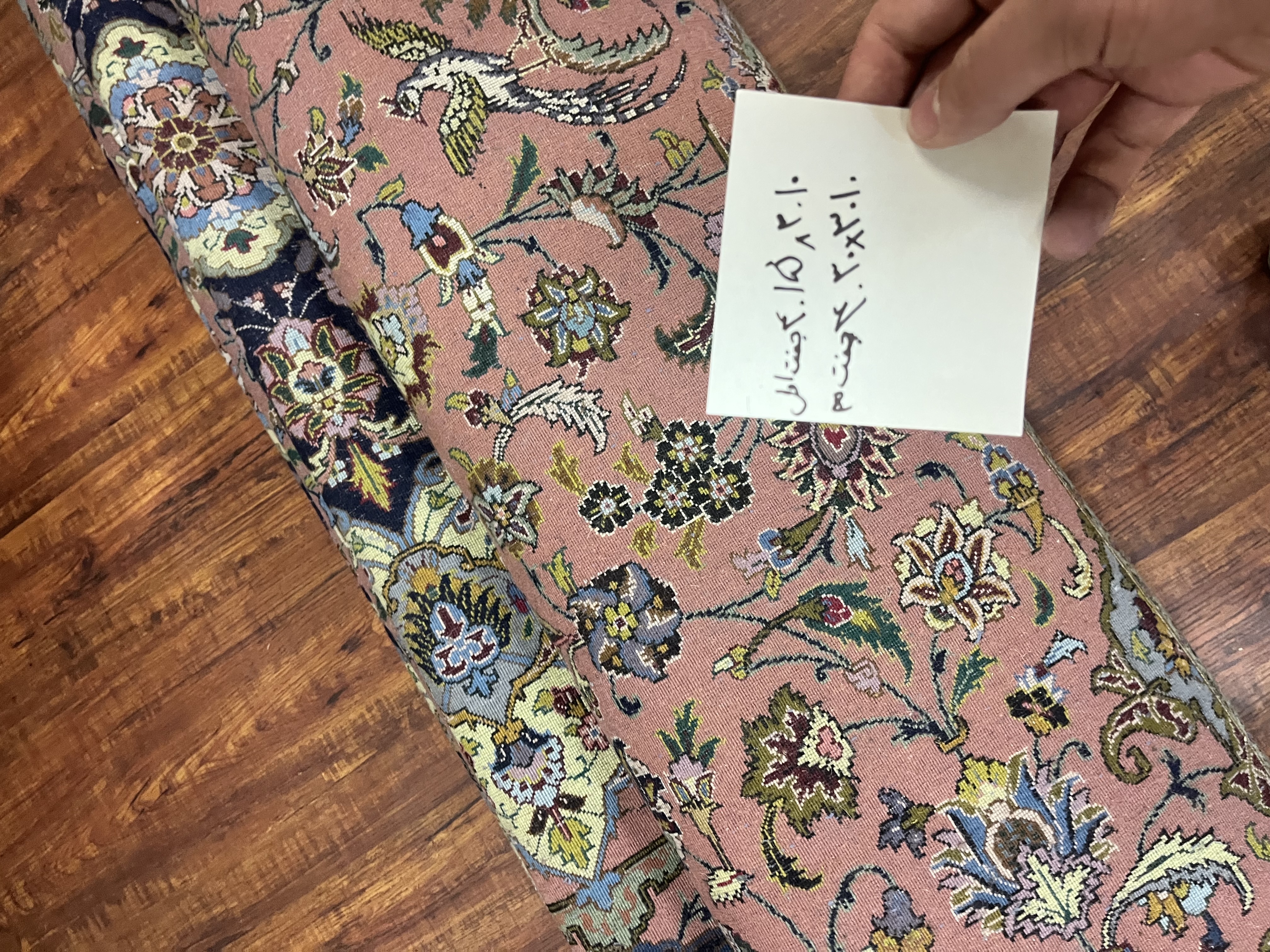 فرش دستبافت قالی اول ۴۲۰ در ۳۱۰ قالی دوم ۴۱۵ در ۳۱۰ سانتی متر این جفت تک به فروش نمیرسد باهم فروخته میشود چله نخ ۴۰ رج مارک جوان امیر خیزی نقشه لچک ترنج در حد نو ۵۰ ساله انتیک