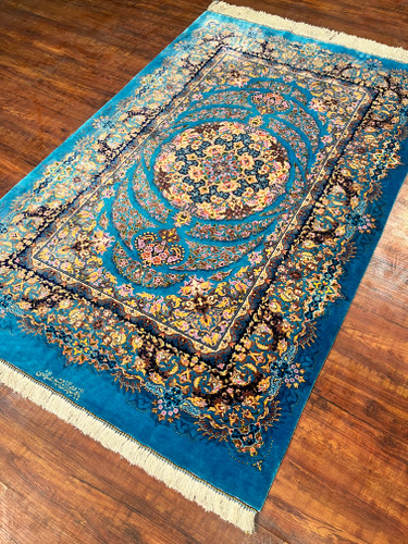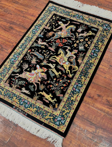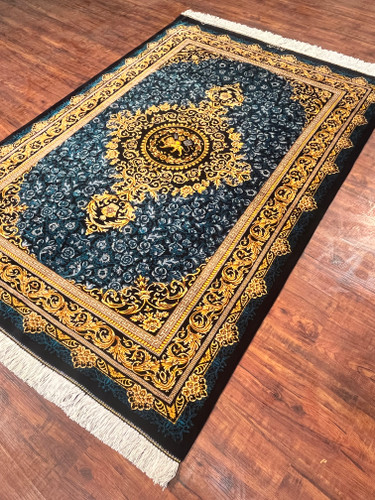 فرش دستبافت تمام ابریشم قم مارک رجبیان